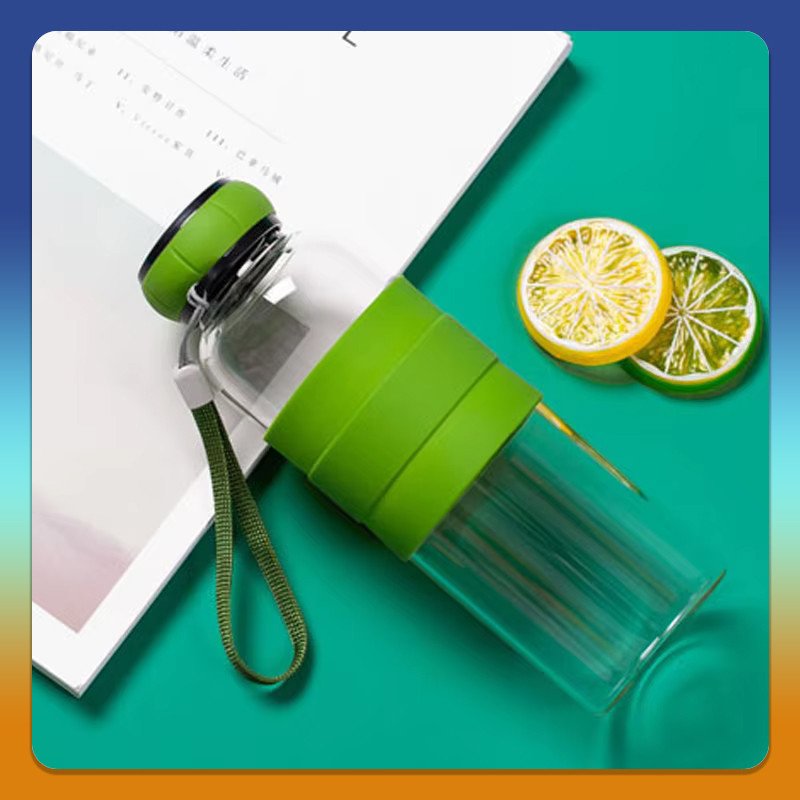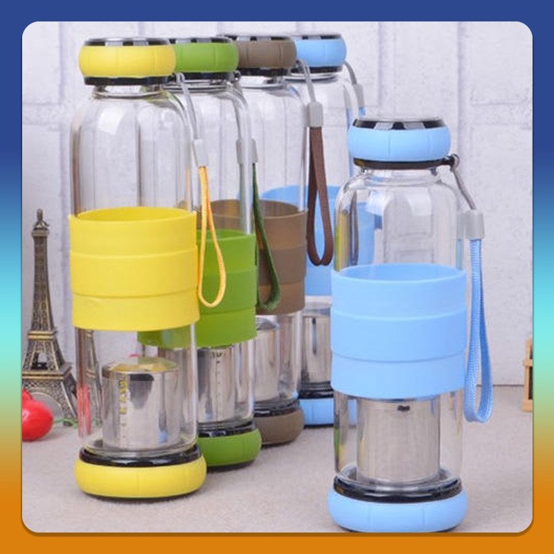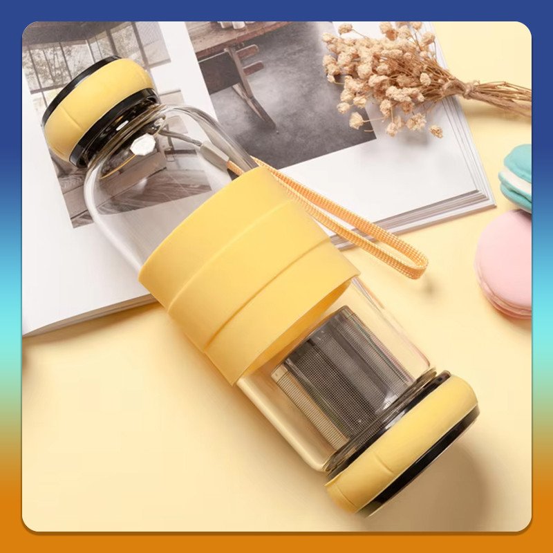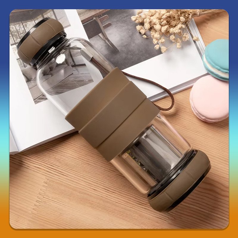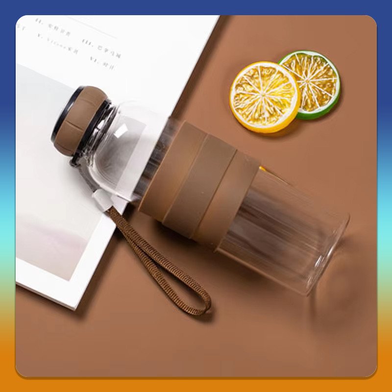 💧 প্রিমিয়াম গ্লাস ওয়াটার বোতল উইথ টি ইনফিউজার – রঙিন সিলিকন কভারসহ
