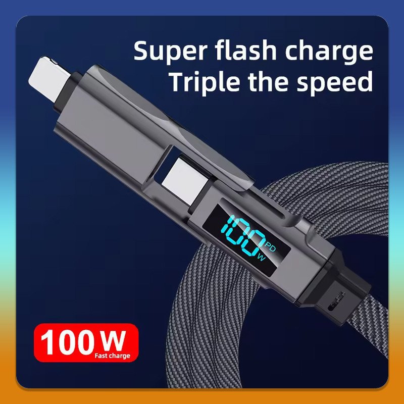 এই 100W 4-in-1 Digital Display Cable একসাথে দেয় শক্তিশালী পারফরম্যান্স, আধুনিক ডিজাইন এবং রিয়েল-টাইম চার্জ মনিটরিং।