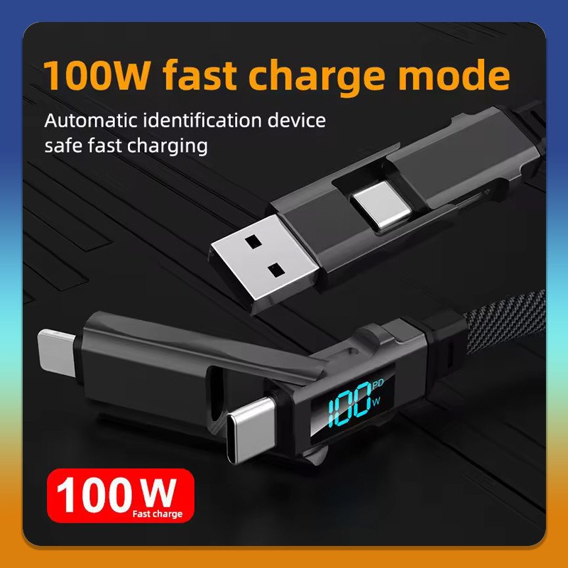এই 100W 4-in-1 Digital Display Cable একসাথে দেয় শক্তিশালী পারফরম্যান্স, আধুনিক ডিজাইন এবং রিয়েল-টাইম চার্জ মনিটরিং।